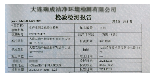 好消息!12月29日,依照国家标准,双迪生产车间在洁净环境检测中洁净度等级达十万级,远高出化妆品生产许可中30万级洁净要求。