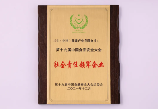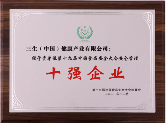 ▲三生(中国)第11次蝉联“中国食品安全十强企业”