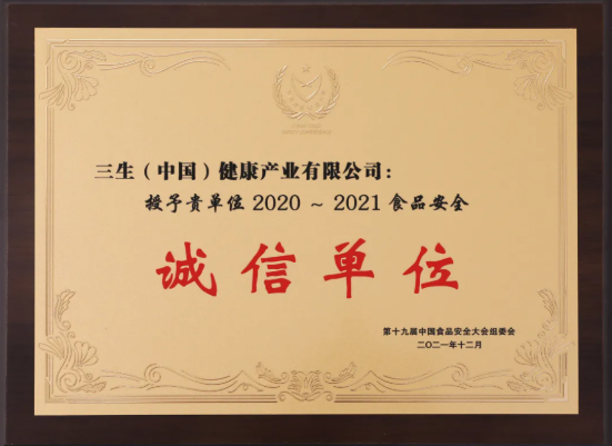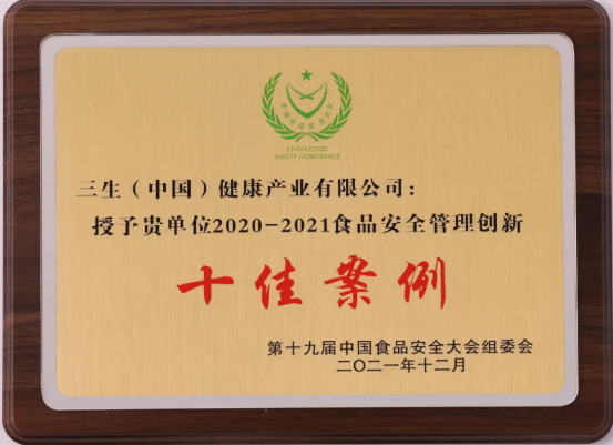 三生(中国)第十一次蝉联“中国食品安全十强企业”——这是从刚刚结束的第十九届中国食品安全大会上传来的好消息。与此同时,黄金宝董事长获得了第十九届食品安全年会安全管理“十大人物”、“优秀企业家”荣誉称号,三生还荣获大会颁发的“社会责任领军企业”、 “2020-2021食品安全诚信单位”、“2020-2021食品安全管理创新十佳案例”等荣誉。