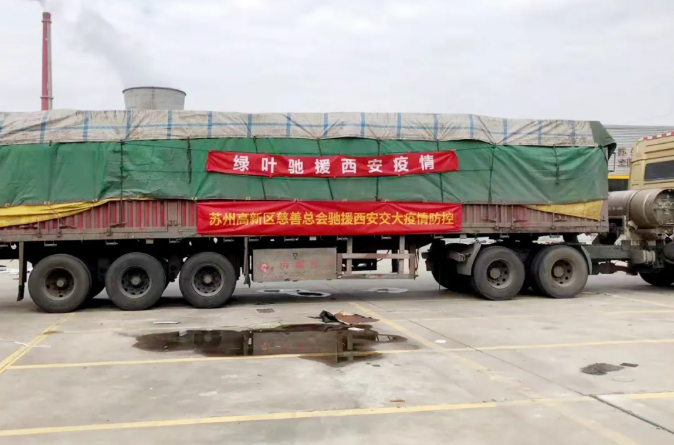 随着本轮西安新冠肺炎疫情的突发,苏州高新区组织部(人才办)牵头,高新区慈善总会及各板块积极动员社会爱心力量,绿叶第一时间响应倡议,通过高新区慈善总会向西安交通大学定向捐赠5万只口罩和2000瓶免洗净手凝露。1月7日下午,载有绿叶等爱心企业物资的慈善专车已出发启程,奔赴西安交大咸阳创新港校区。