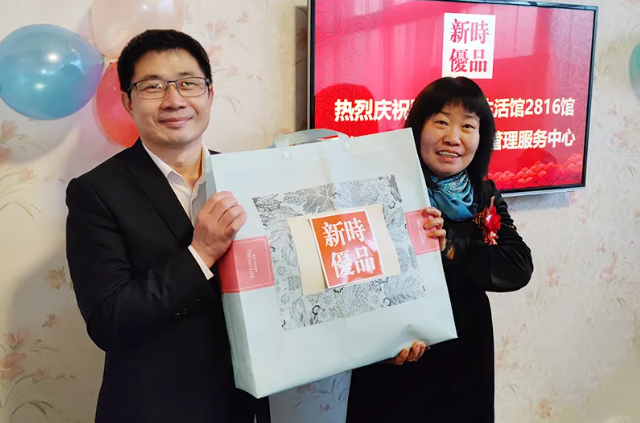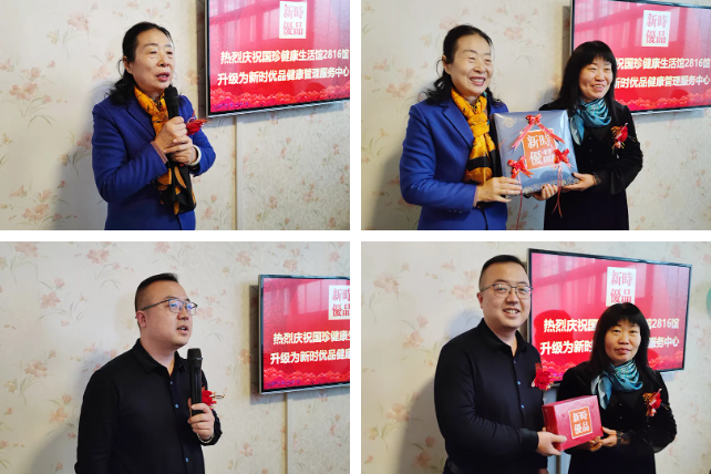 新时代人代表表达了提升能力和专业服务的决心,表示将为健康产业的发展贡献自己的力量,并向店长赠送新时优品祝福纪念品。