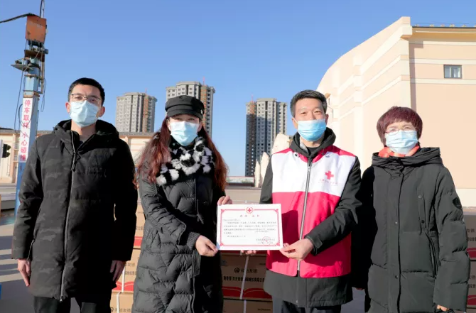在韩金明董事长的指挥下,和治友德立即展开行动,与天津市老区建设促进会和天津市宝坻区红十字会取得联系,决定捐赠“明星”健康产品,助力抗疫一线工作人员和志愿者们健康坚守,为抗击疫情贡献力量!和治友德副总裁郅群女士带队参与此次捐赠活动。