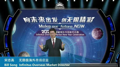 2022无限极海外市场新年庆典活动于1月9日隆重举行, 今年的主题是“向未来出发创无限精彩”。无限极全球CEO、无限极(中国)有限公司副董事长俞江林先生、无限极(中国)有限公司副总裁、首席增长官薛守春先生、无限极产品发展总监唐青涛先生、无限极海外市场总监宋志高先生等行政嘉宾以线上直播和视频的形式参与庆典活动。