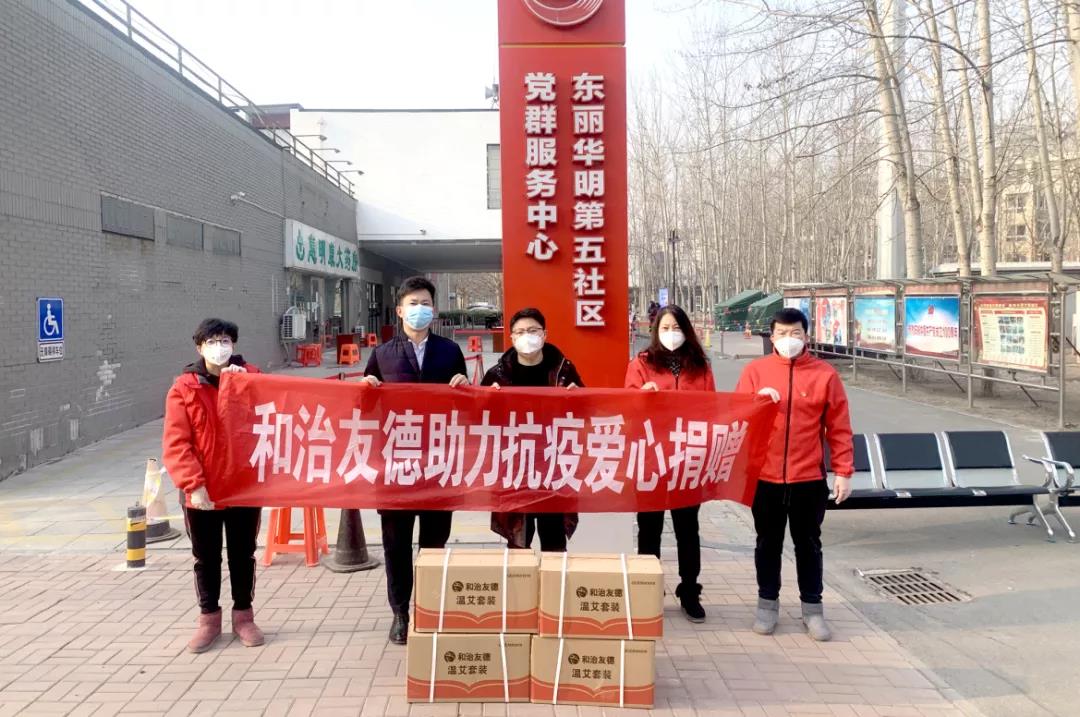 2022年1月18日,天津和治友德制药有限公司向天津市东丽区华明街第五社区党群服务中心捐赠一批“温艾套装”等爱心抗疫物资,将相关物资送达抗疫一线工作人员和志愿者们手中,为寒冬里不畏疫情、坚守岗位的勇士们送去温暖。