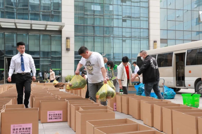当下,上海正面临前所未有的严峻疫情,部分居家封控的上海居民生活必需物资严重紧缺,缺米少面、一菜难求。为助力上海虹口区生活物资保供,保障市民基本生活,4月10日,绿叶科技集团在虹口区政府、区疫情防控领导小组的协调指导下紧急行动,在最短时间内筹备米、面、蔬菜等物资,装配一整车保供生活物资套餐箱,火速驰援上海抗疫。