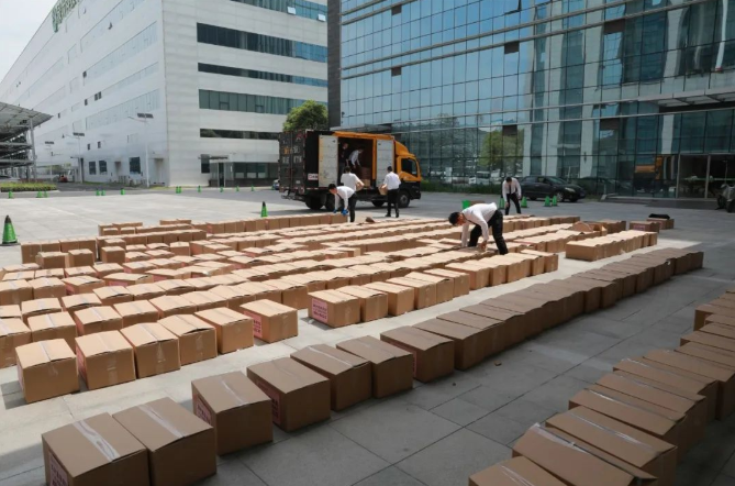 所有保供生活物资装配成套餐箱,既能有效避免转运途中可能产生的病毒感染,也可以从源头节省社区工作人员现场分发的时间。经过不到3小时的分拣与装货,该批援沪物资已于10时许装车完毕,火速送往上海虹口区部分社区居民家中。