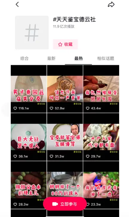 2021年初,凭借网络直播为网友们鉴定古董文玩的方式,天天鉴宝在B站、抖音等社交平台迅速走红。抖音粉丝们将天天鉴宝比作德云社,话题“天天鉴宝德云社”的相关视频总播放量已有11.9亿次。到了2021年10月,天天鉴宝账号的全网粉丝数量已经突破5000万。