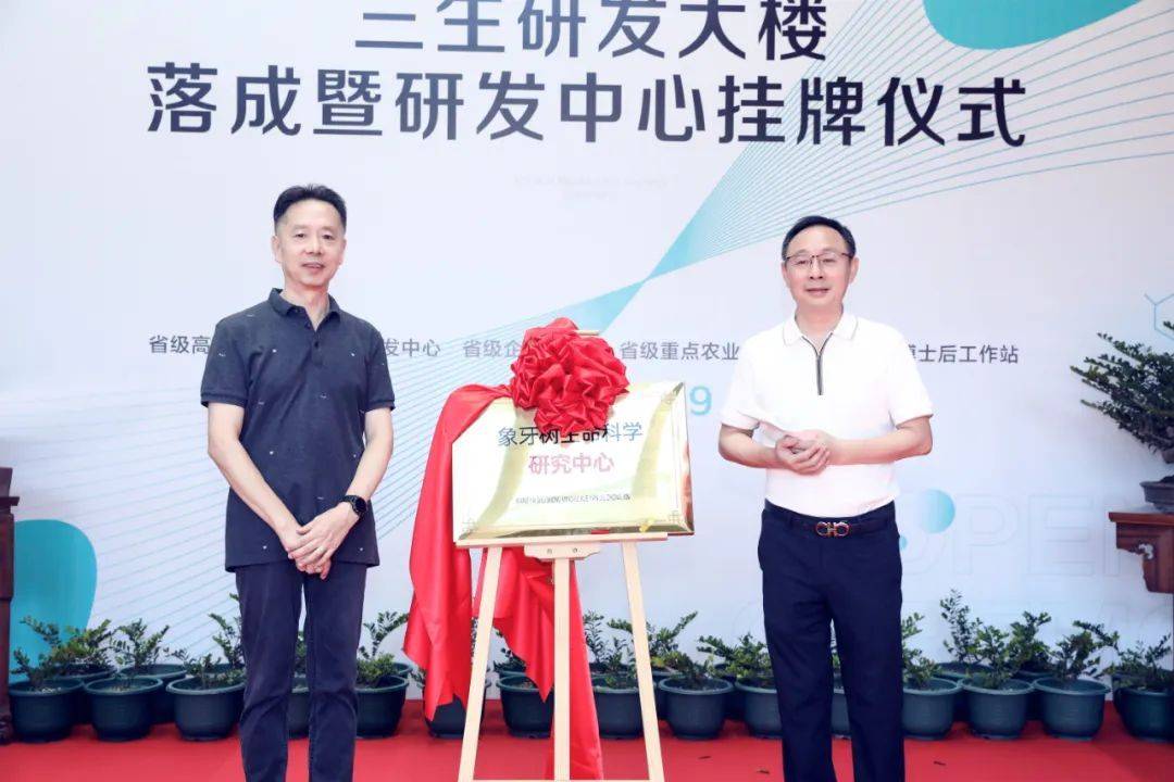 随后,三生(中国)董事长黄金宝与研发技术副总贾福怀共同为大楼落成庆典揭牌。