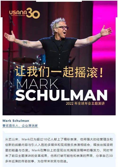 当然了,USANA创始人兼荣誉董事会成员麦伦·华斯博士,USANA董事会主席兼首席执行官Kevin Guest纪云基,USANA总裁Jim Brown,USANA首席科学家Rob Sinnott博士,USANA首席官兼中国区执行董事Brent Neidig聂怀禹等等等等,也将一一亮相,带来精彩的分享,这绝对是一场视觉与精神的盛宴,精彩不容错过!