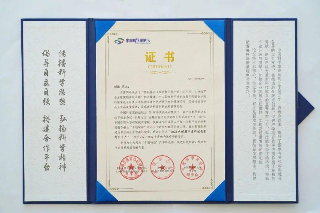 双迪公司董事长刘洪获“2022大健康产业科技创新突出个人”荣誉