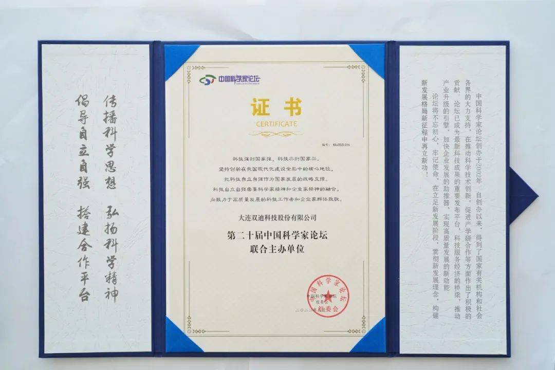 双迪公司获“第二十届中国科学家论坛联合主办单位”荣誉