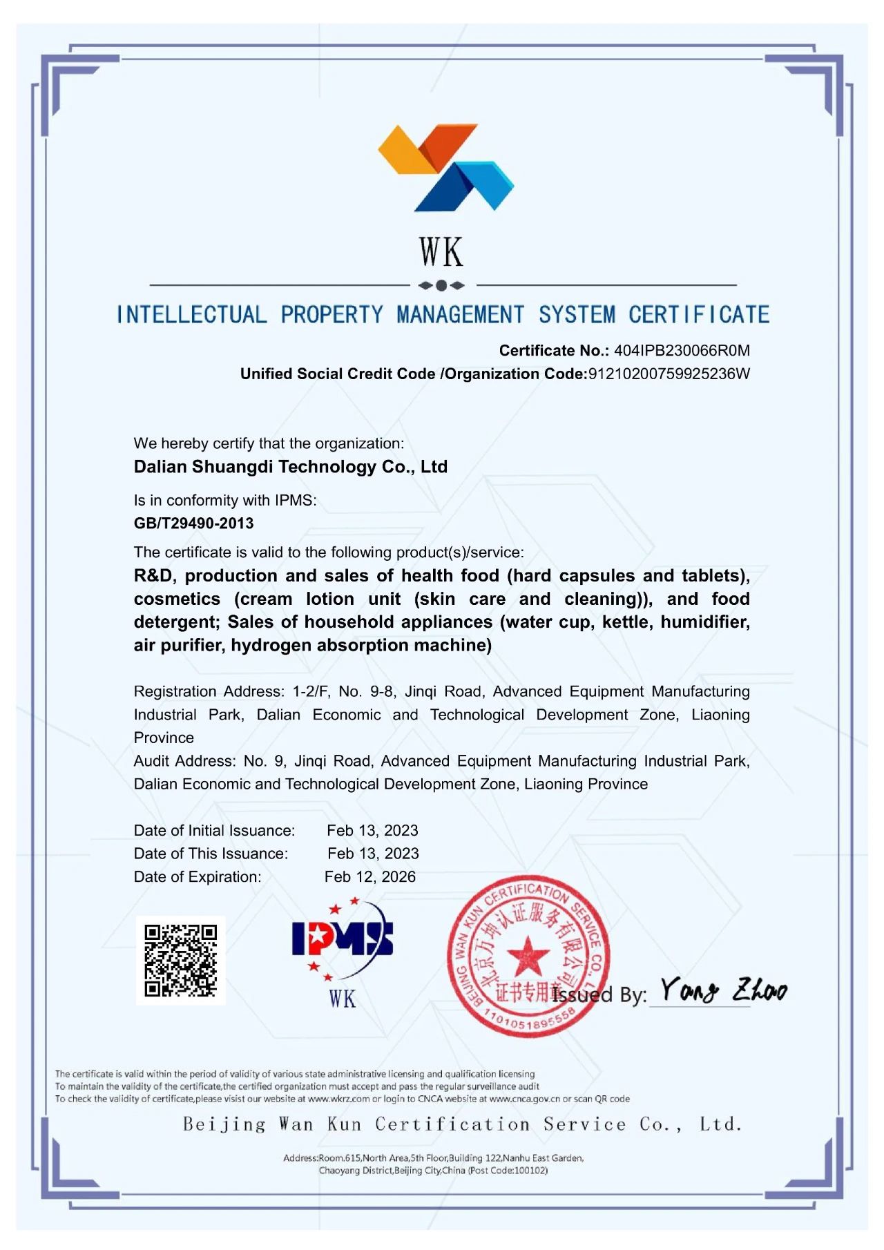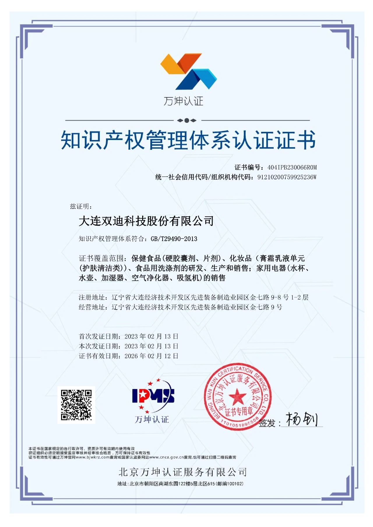 《企业知识产权管理规范》(GB/T29490-2013)是我国首部企业知识产权管理国家标准,涉及知识产权战略制定、制度设计、流程监控、运用实施、人员培训、创新整合等一系列管理行为的系统工程,贯穿于知识产权创造、保护和运用的各个环节。建立完善的知识产权管理体系,有助于双迪提高市场竞争地位,增强核心竞争力和提升技术创新能力。