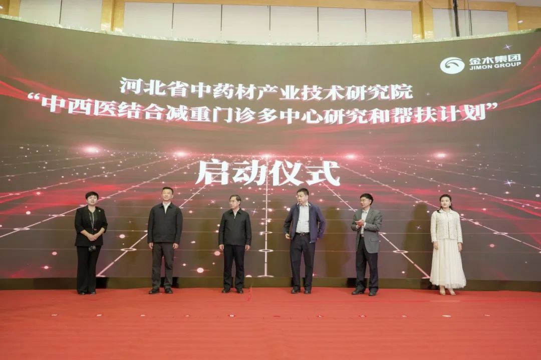 活动现场,金木集团党委书记樊伟绵、金木集团执行副总裁、河北省中药材产业技术研究院副院长田东梅等领导嘉宾共同走上舞台,一同按下触摸手印,随着灯光亮起,河北省中药材产业技术研究院 “中西医结合减重门诊多中心研究和帮扶计划” 正式启动。