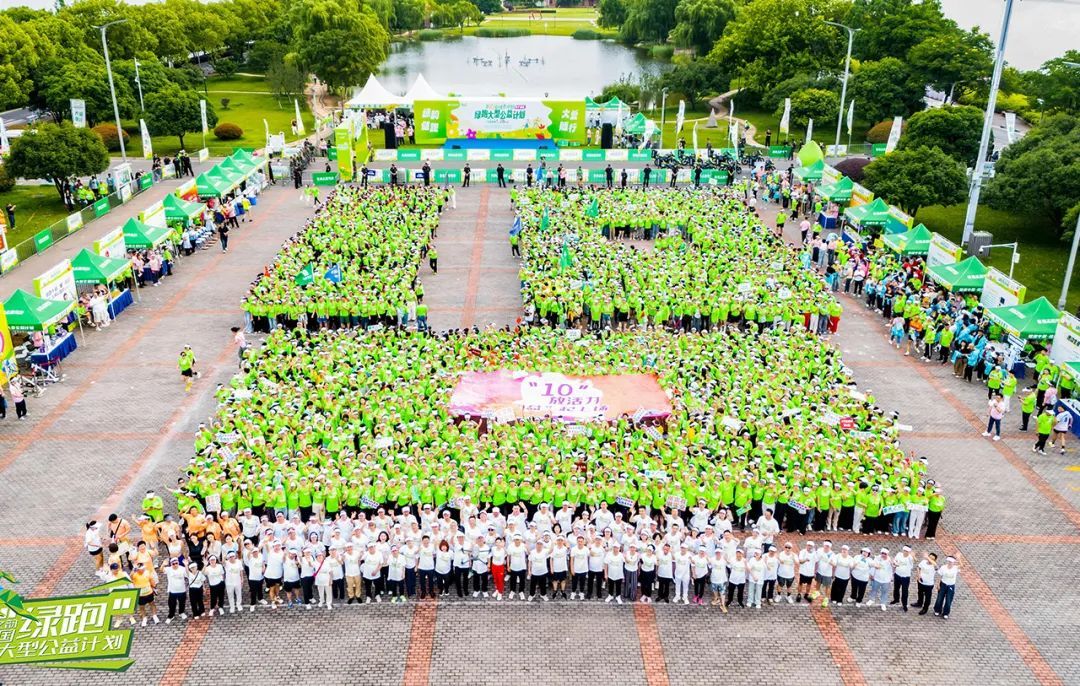 活动现场,4000多名绿跑选手在橘子洲喷泉广场有序排列出“10”字巨幕造型,伴随着欢呼声和响彻云霄的“‘10’放活力,‘益’起上场”,航拍镜头下宛如跃动的绿色脉搏,致敬着十年公益长河中的每一簇浪花。这是独属绿跑的浪漫和恢弘,激励我们涌爱向前,“益”起奔赴美好。