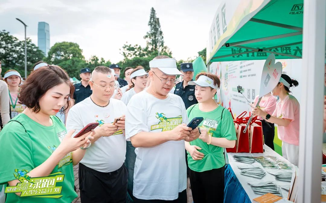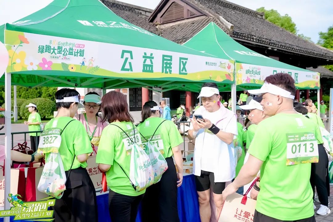 今年的绿跑特别开设了十二大主题展区,汇聚绿之韵旗下健康产品、公益手工作品及文创周边,全景式呈现了绿之韵“健康+科技+文化”生态蓝图。跑友们在这里逛展打卡,探索绿之韵“运动+公益”生态圈。游戏区街头篮球、爱心加速度等潮玩项目吸引大批市民参与,公益与时尚在此碰撞出火花。520主题打卡区更成网红胜地,跑友们手持“‘10’放活力,‘益’起上场”手牌拍照,社交媒体瞬间刷屏。活动还特邀美女超模、小红书博主、抖音达人全程打卡,线上线下联动打破公益边界。