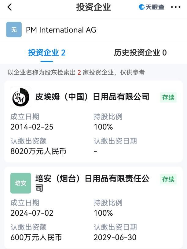 2024年7月,培安(烟台)日用品有限责任公司成立,据传这个公司将负责PM国际国内经销商系统的搭建。