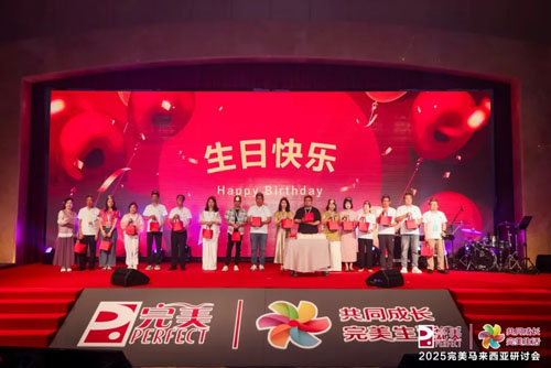 庆生环节温情满溢,在悠扬的《生日快乐》歌声中,完美公司CEO彭志红为寿星们送上祝福。全场完美人齐声合唱,定格下这个充满爱的瞬间。