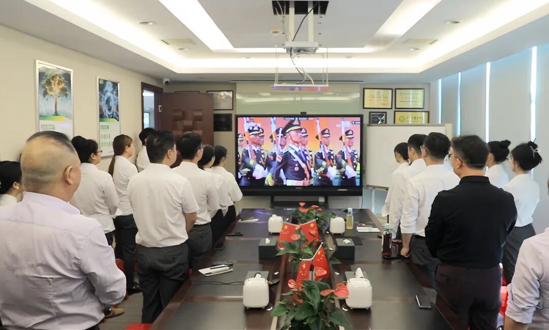 2025年9月3日上午,纪念中国人民抗日战争暨世界反法西斯战争胜利80周年阅兵式在北京天安门广场隆重举行。为深刻铭记中国人民抗日战争暨世界反法西斯战争胜利的伟大历史,弘扬爱国主义精神和革命英雄主义传统,进一步增强企业凝聚力和党员党性修养,绿之韵集团全体职工、党员、各市场家人集中观看了这场盛大阅兵盛典,感受祖国风采,凝聚奋进力量。