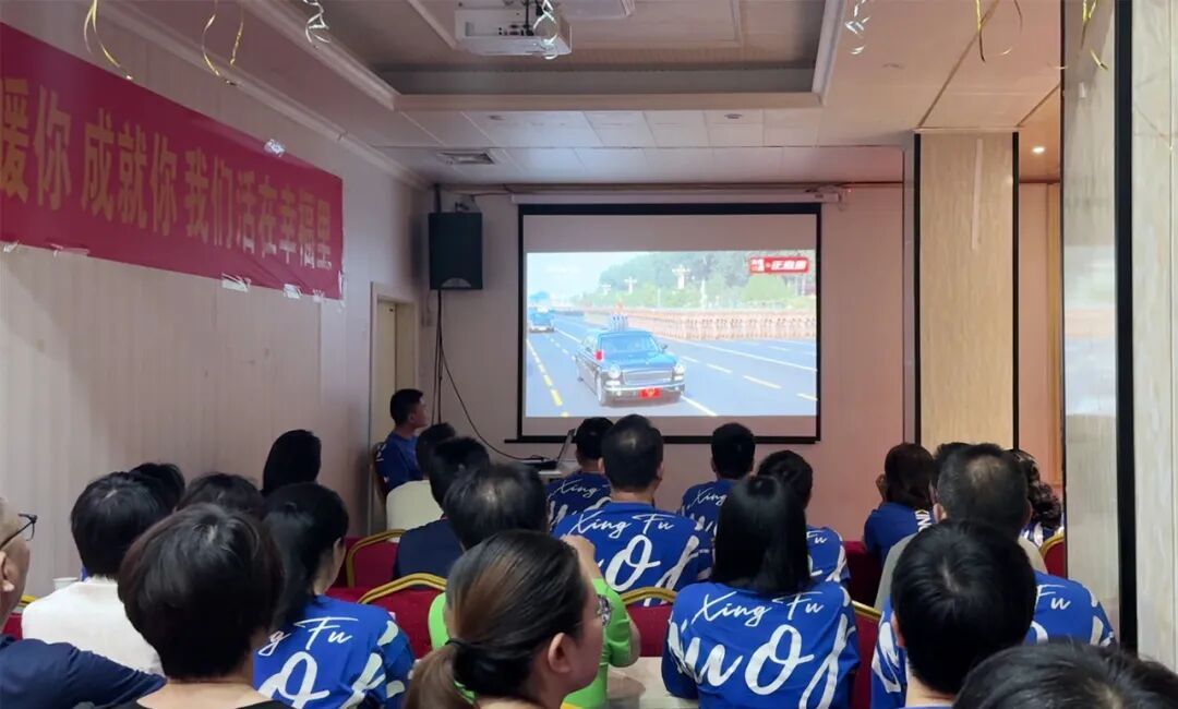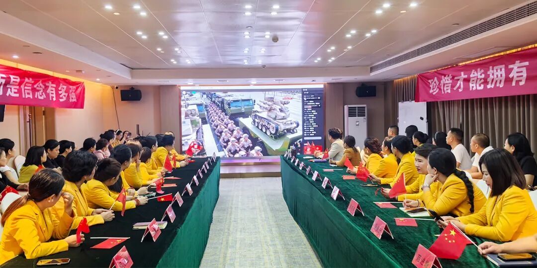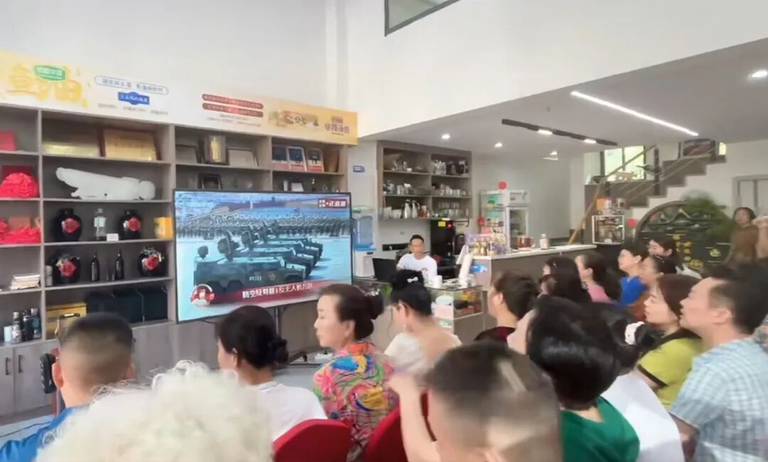 绿之韵集团职工、党员、各市场家人观看阅兵仪式