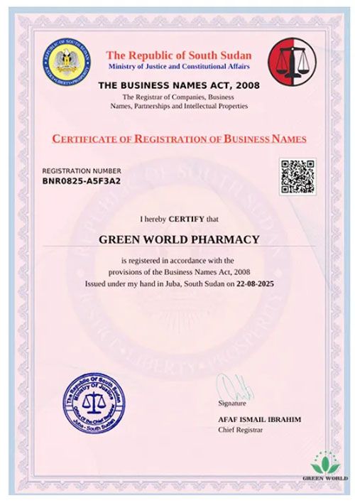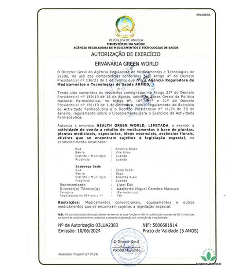近日,绿世界国际在国际市场拓展领域传来重磅喜讯。历经多年战略布局与积极申报,安哥拉分公司、赤道几内亚分公司及南苏丹分公司相继拿到所在国政府药监局核发的医药经营销售许可,获准销售保健品与常规药品。这一成果不仅标志着绿世界国际成功开辟了全新市场方向,更有力地提升了在全球大健康领域的综合竞争力。