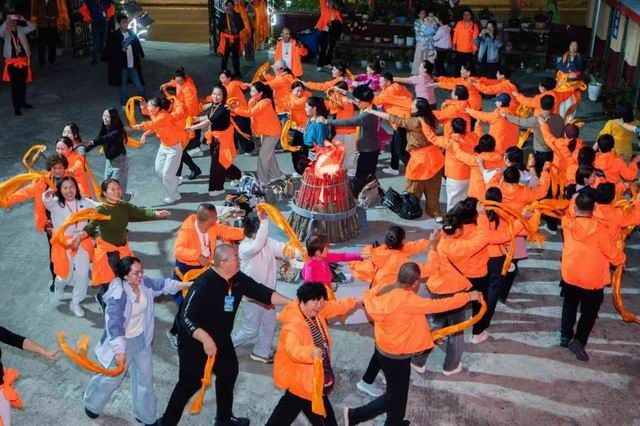 夜幕降临,一场温馨的欢迎晚宴驱散了旅途疲惫。饭后藏族同胞与志愿者手拉手围成圆圈,伴着悠扬藏歌与明快鼓点跳起锅庄舞,火焰映红笑脸,也让团队情谊在欢舞中愈发浓厚。