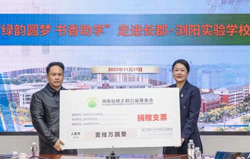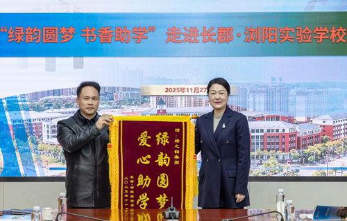 为积极响应国家乡村振兴战略,营造爱学、勤学、好学、比学的浓厚氛围,2024年,湖南省绿之韵公益基金会通过“绿韵圆梦·书香助学”项目捐赠30万元爱心资金,专项用于长郡浏阳实验学校助学项目。2025年11月27日, “绿韵圆梦·书香助学”活动再次走进该校为优秀学子颁发助学金,以公益力量助力乡村振兴背景下的文化建设与教育事业发展,为浏阳市教育城乡一体化进程注入温暖动能。
