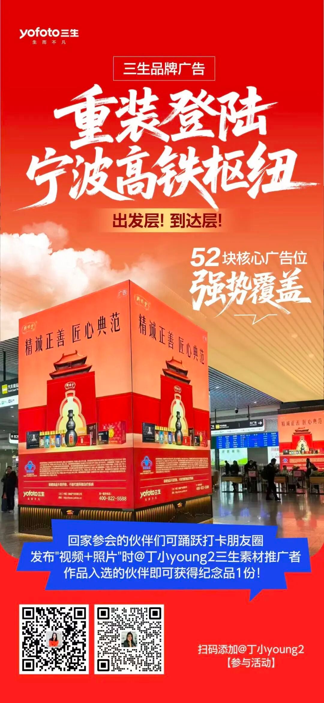 当速度与品质相遇,当流量与实力碰撞——继强势亮相宁波栎社国际机场后,三生品牌广告再度重装出击——全面登陆宁波高铁枢纽!