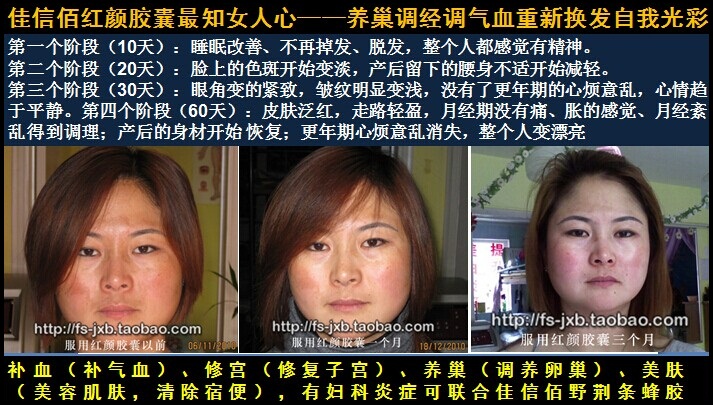 补血(补气血)、修宫(修复子宫)、养巢(调养卵巢)、美肤(美容肌肤)红颜胶囊,最知女人心!