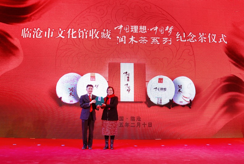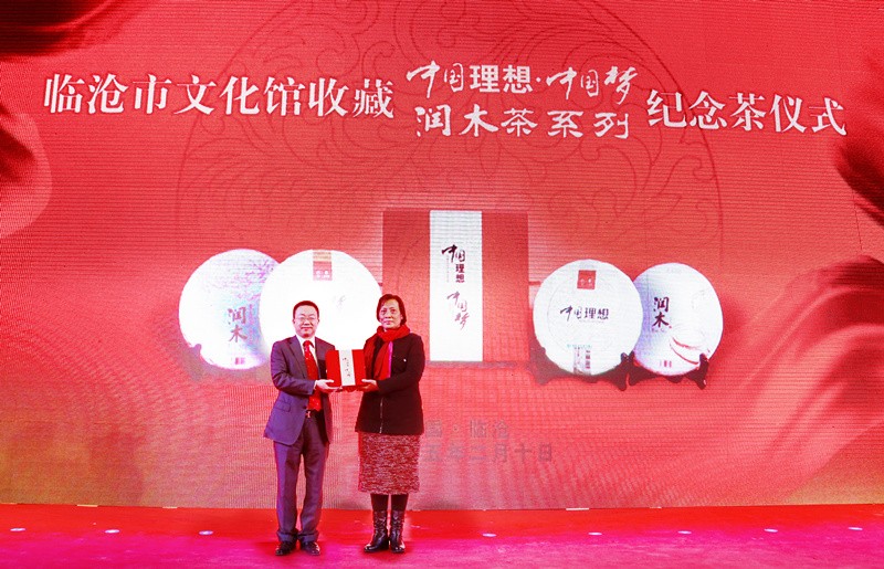会上,隆重举行了“中国理想•中国梦”、“润木”两款新品的全球首发仪式。焦少良副董事长携手云南龙润茶业集团总裁高众,在现场3000多名经销商的见证下,一同揭开了两款新品的健康面纱。两款新品包装大气庄重,茶韵飘逸,加以麻、棉等自然材料,蕴涵中国天圆地方传统理念,意趣高雅,既契合中国茶文化所具有的格调与神韵,诠释盛世茶兴,体现了当下主旋律所具有的时代风尚,是收藏和品饮的双重佳品。而这两款2015开年力作正是臻选世界茶树源产地——临沧,海拔1860米的高山之上珍稀古树春尖精制而成。临沧市文体局文馆所特别收藏了这两款代表新生、起航、梦想的茶品,共同见证了理想与临沧的不解之缘。