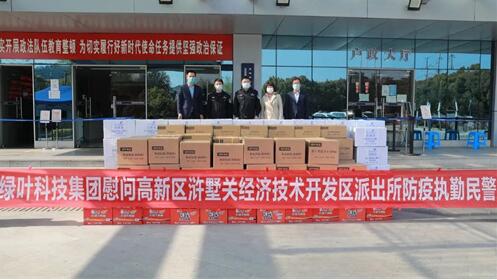 慰问现场,苏州市高新区浒墅关经济技术开发区派出所所长夏广潇、教导员余健,浒墅关派出所所长顾光晋、教导员朱勇,高新区浒墅关中队长时宏伟代表一线防疫执勤人员接收了慰问品,并向绿叶对抗疫工作的支持和特殊时期对公安民警辛勤工作的理解表示感谢。