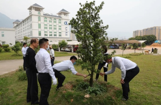 早前的4月19日,高教授还亲自为园区的园艺师和部分相关员工指导示范了如何对更好地对苗木进行修剪。
