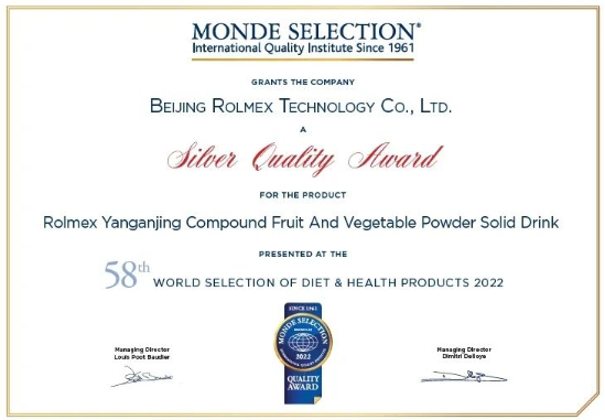 2022年世界品质评鉴大会共有来自90个国家的3000余款产品参加评审。经过层层严格的评审,罗麦科技有限公司旗下两款产品荣获国际品质评鉴组织“蒙特奖!其中仙肤莱密集修复魔萃获得国际质量金奖,炎干净复合果蔬粉固体饮料获得国际质量银奖。代表了世界健康饮食产品以及护肤品的选择,罗麦科技凭借过硬的产品获得了国际专业品鉴机构的认可,为消费者购买优质产品提供指引。