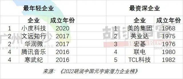 上榜企业平均年龄21岁,最年轻的是2岁的小度科技,最资深的是54岁的美的。最资深企业多是消费电子行业。