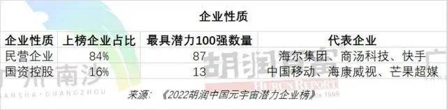 16%为国资控股企业,以中国移动和芒果超媒为代表;84%为民营企业,以小米和网易为代表。