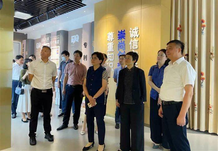 安惠公司党委书记、董事长陈惠陪同调研组参观了南通市知识产权宣传教育基地——安惠知识产权主题展馆,介绍了企业在商标注册、专利转化、科研平台等知识产权管理方面的工作。