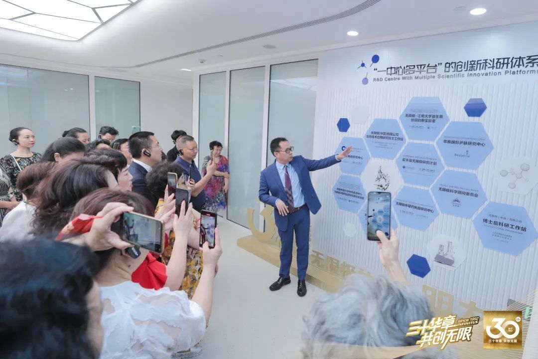 伙伴们在无限极核心管理团队成员的陪同下,参观了创业30周年历程展、全球体验中心及全球科研中心,在重温创业路的同时,也亲身感受公司强大的科研实力,及面对新的环境、新的生态,不断突破创新的决心和勇气。