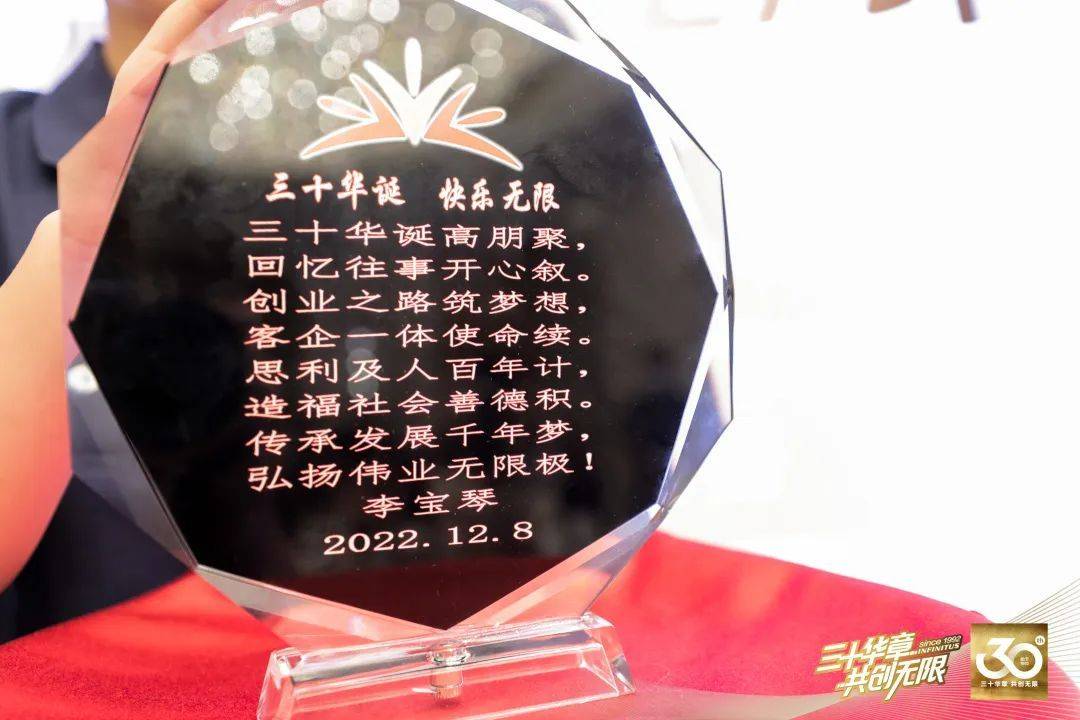 对于公司的历程回顾,胡贞忠先生对此也分享了自己的感受:“1997年加入公司时,我还是一名初出茅庐的小伙子,感谢在座很多老朋友的包容与提醒,一路走来,我们从相识、相知,到相助、相拥,攻破了一个又一个的难关。”他期待继续与大家追求更好的生活,一起开拓更美好的30年。