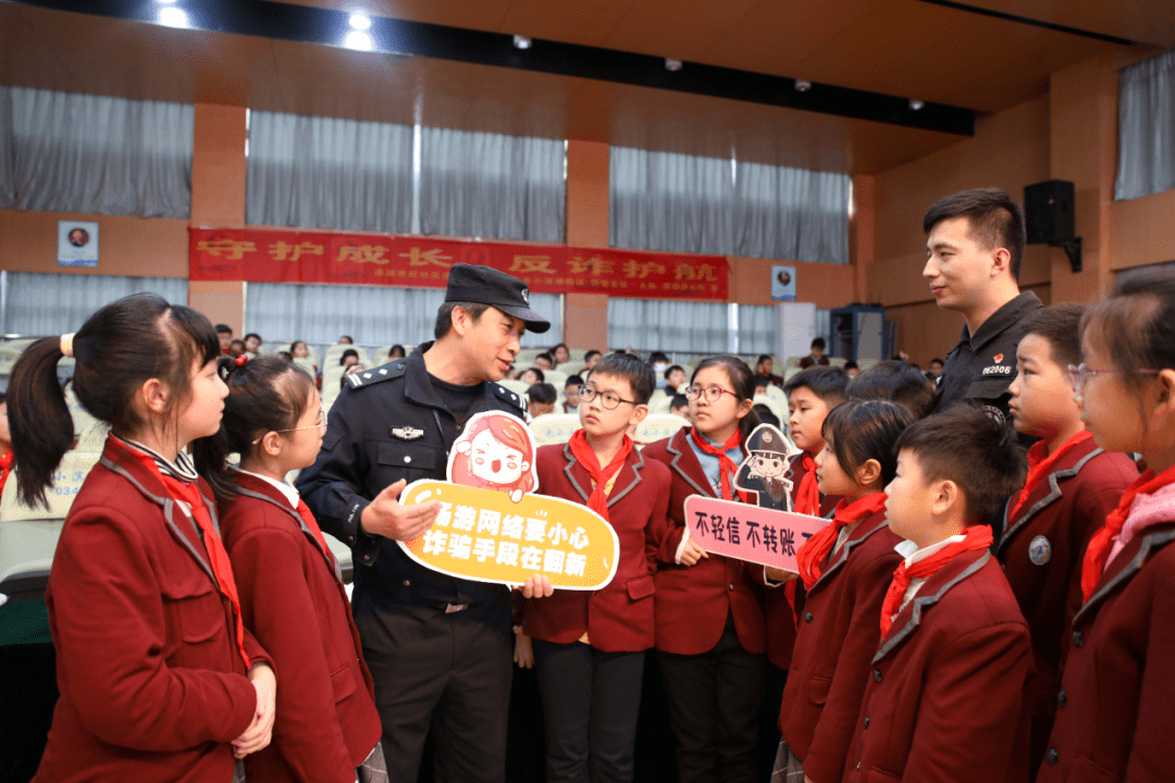 合肥市公安局滨湖派出所民警在给学生们讲解电信网络诈骗防范常识。新华社记者 曹力摄