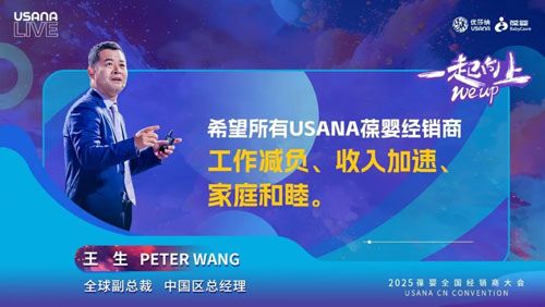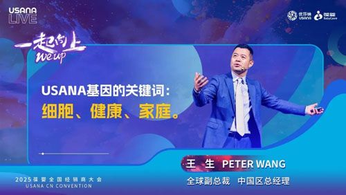 USANA全球副总裁 中国区总经理Peter王生先生在2025葆婴全国经销商大会中点明,在不确定的环境下需要USANA葆婴,现在就需要USANA葆婴。邀请所有伙伴说出我们共同的心声“生生不息,一起向上”!他表示,USANA基因里的核心关键词就是细胞、健康和家庭。希望USANA葆婴实现公司专业化、中国化,伙伴职业化,产品赛道化,队伍年轻化。