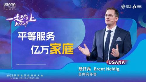 USANA首席商务官Brent Neidig强调了“经销商第一、健康第一、家庭第一”的核心理念,展现了USANA葆婴对中国市场的坚定承诺。