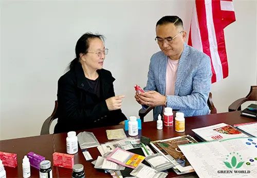 4月15日,李红宾副总裁在绿世界集团总裁李德明博士的陪同下,接见了美国生产基地质量部负责人Zubair,并听取了关于新品生产流程及质量管控的专项汇报,在实地参观考察了产品生产线后,全面了解营养补充剂的研发工艺及生产效能。