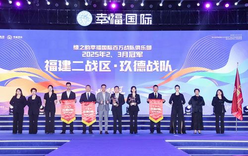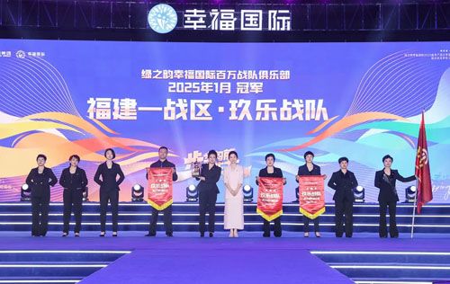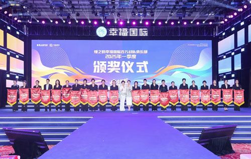 随后,大会为2025年第一季度达成百万业绩的战队举行了盛大的颁奖仪式。绿之韵集团市场运营中心市场业务总监喻鸣鸾、绿之韵集团市场运营中心区域业务总监谭红为“2025年一季度一月达成百万战队”颁奖。绿之韵幸福国际市场商学院特聘教授、绿韵悦喜智能科技有限公司首席研发专家骆春岗,绿韵悦喜智能科技有限公司总经理杨邢轩为“2025年一季度二月达成百万战队”颁奖。绿之韵集团品宣部执行总经理龙雅凤,绿之韵健康专家委员会专家委员、绿之韵幸福国际市场商学院院长侯俊霞为“2025年一季度三月达成百万战队”颁奖。绿之韵集团运营部执行总经理·国际商学院常务副院长陈敏为“2025年一季度一月百万战队冠军玖乐战队”颁奖。绿之韵国际商学院执行院长黎芋成为“2025年一季度二、三月百万战队冠军玖德战队”颁奖。随后,绿之韵国际商学院执行院长黎芋成对绿之韵幸福国际的核心竞争力进行了全面解析。
