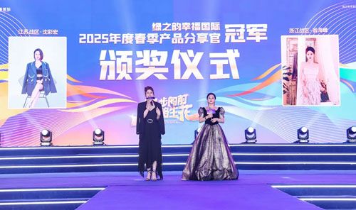 绿之韵集团市场运营中心市场业务总监喻鸣鸾、绿之韵集团市场运营中心区域业务总监谭红为“2025年一季度一月达成百万战队”颁奖