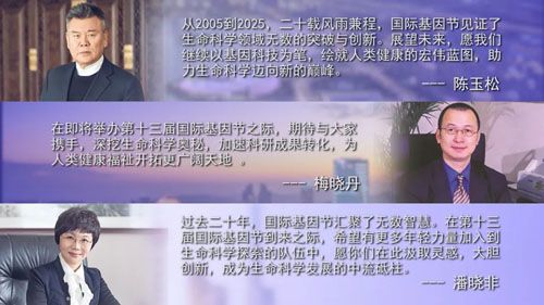 国际基因节联合发起人、国际基因节大会主席陈玉松先生,国际基因节联合发起人、国际基因节大会执行主席梅晓丹先生,国际基因节大会秘书长潘晓非女士也为第十三届基因节的隆重召开送来了寄语。