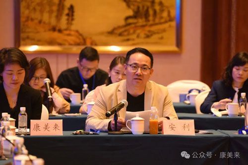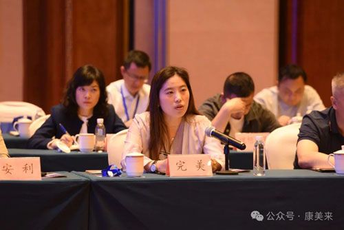 会上全省各直销企业安利、无限极、完美等代表交流发言,康美来营销总裁王莎莎代表康美来汇报工作。