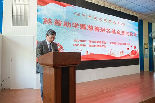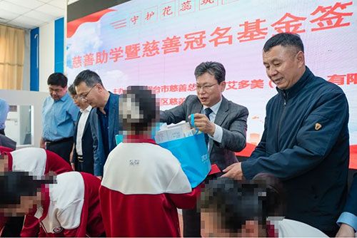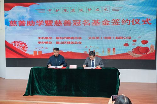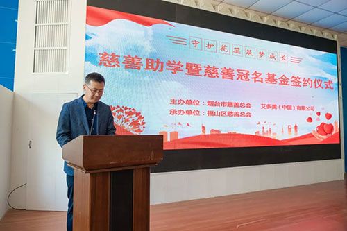 此次捐赠活动由烟台市慈善总会、艾多美(中国)有限公司主办,福山区慈善总会承办的“守护花蕾・筑梦成长”慈善助学暨慈善冠名基金签约仪式在福山区臧家庄中学举办。