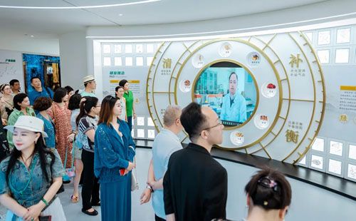 活动当天,流动党员还集体参观了绿之韵中心17层数字化科技展厅。展厅以“水之道”为叙事主线,融合“东哲西技”理念,通过数字技术打造互动体验空间,立体呈现企业文化、发展历程、党建公益、科研成果及未来愿景。讲解员重点介绍了集团在大健康领域的创新成果,沉浸式的智慧展示让党员们直观感受到企业科技实力与初心使命的深度融合。