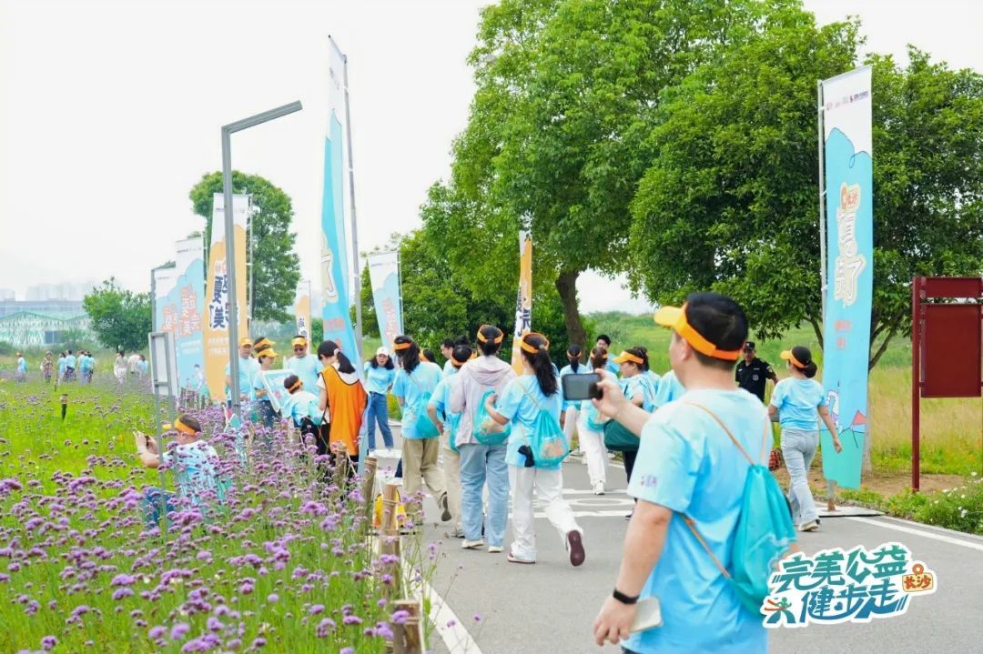 健步走过程中,参与者们相互鼓励、并肩前行,充分展现出团队协作的精神。他们穿梭在洋湖湿地公园的花海田园和缤纷的林荫小道之间,感受着夏日的气息和长沙的热辣滚烫。欢笑声、交谈声在绿意中回荡,与鸟鸣声、风声营造出独特的夏日乐章,构成了一道亮丽的风景线。
