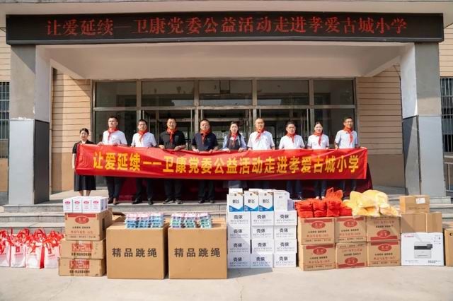 2015年,针对蒙山地区教育条件落后现状,由卫康出资捐建了“卫康孝爱古城小学”,修建了标准的教学楼、实验楼、运动场等教学设施,解决了附近山区孩子上学难的问题,孩子们终于可以在明亮的教室里朗朗读书了。