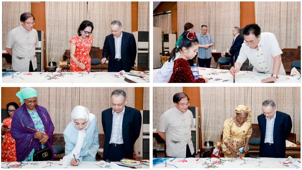 活动期间,还特别设置了笔会与艺术品展示环节。来自亚非多国的驻华使节、艺术家们共同参与笔会,以水墨丹青抒发对妇女事业的支持。现场展出了书画家捐赠的书画作品,既有中国传统文化的精髓,也融入了亚非艺术特色,成为“艺术+公益”理念的生动实践。